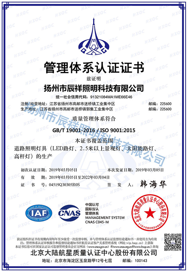 揚(yáng)州市辰祥照明科技有限公司是中國(guó)道路照明制造行業(yè)的重點(diǎn)骨干企業(yè)。公司座落于歷史文化名稱(chēng)揚(yáng)州市北郊美麗富饒的高郵湖畔,享有"路燈之鄉(xiāng)"美名的送橋鎮(zhèn)。 緊臨京滬、滬寧、寧啟鐵路。地理位置優(yōu)越,交通便捷發(fā)達(dá)。